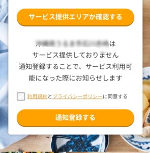岐阜の希望の配送先がつくりおき.jpの配送エリア外だった場合には、サービスが利用可能になったときには、このように通知を受け取れるように設定することができます。